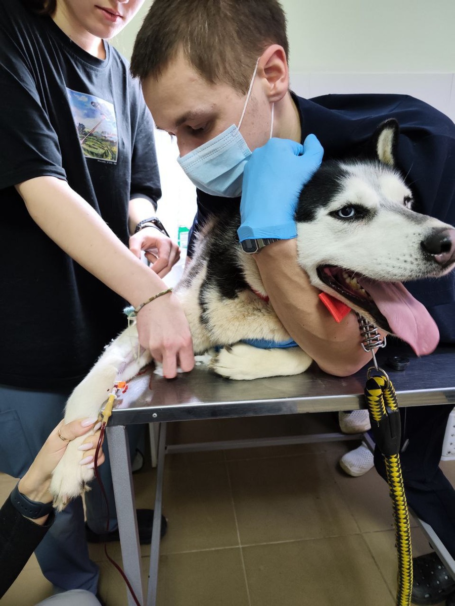 А пока в приюте кипит работа🤦 Наша Эльза сегодня ездила спасать собачью жизнь...Сегодня она у нас донор...Очень надеемся на выздоровление