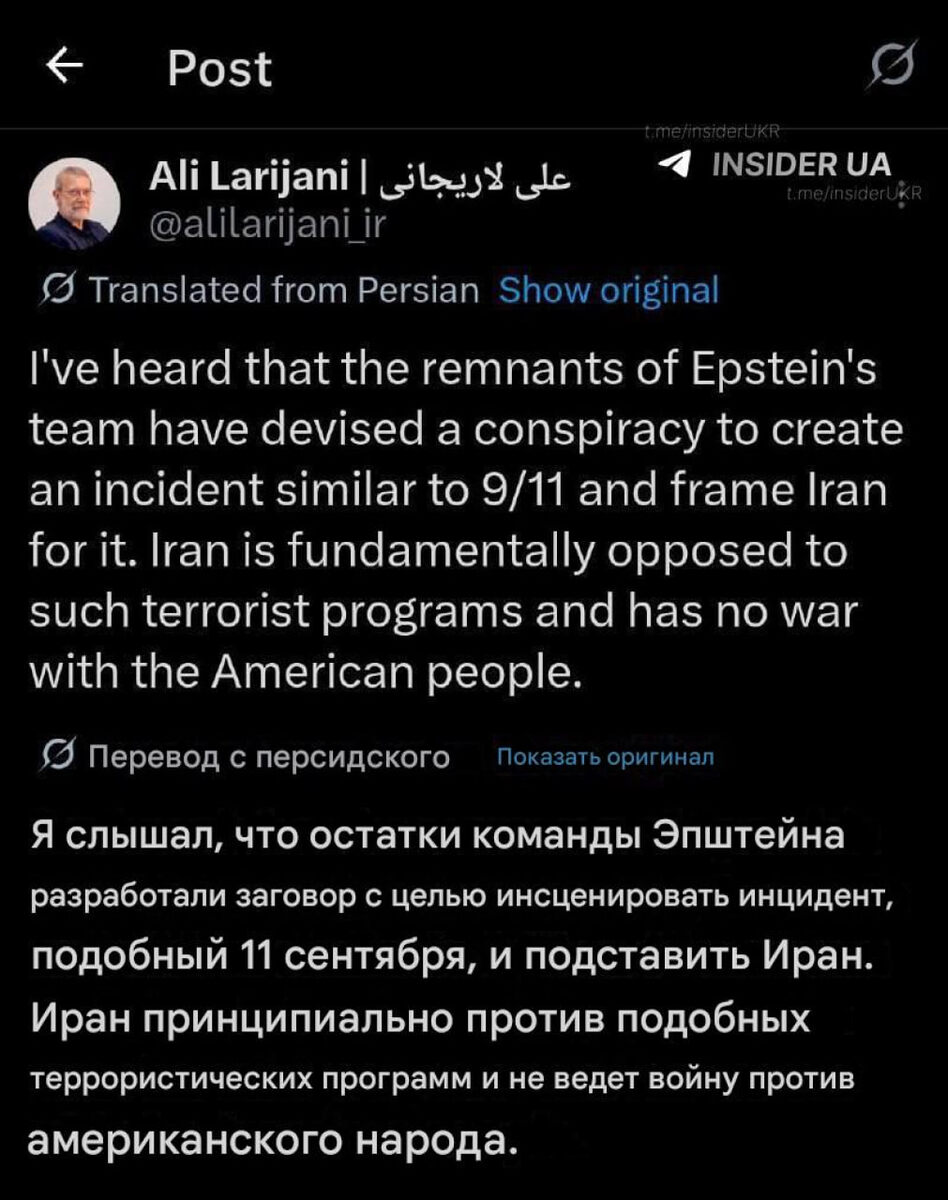 Об этом заявил секретарь Совбеза Ирана Али Лариджани. По его словам, американские спецслужбы планируют обвинить в этой атаке Тегеран и получить повод для объявления войны. Ранее Такер Карлсон также заявлял, что для наземной операции США в Иране может потребоваться теракт на территории Штатов. По его словам, воздушных ударов недостаточно для смены власти в Иране, а общество к вторжению не готово. По словам журналиста, Израиль заинтересован в такой эскалации. В Сети уже вспоминают очередное пророчество Жириновского о начале войны с применением «самого мощного оружия» в 2027 году. ⭕️ Подписаться | Мы в MAX | Буст
