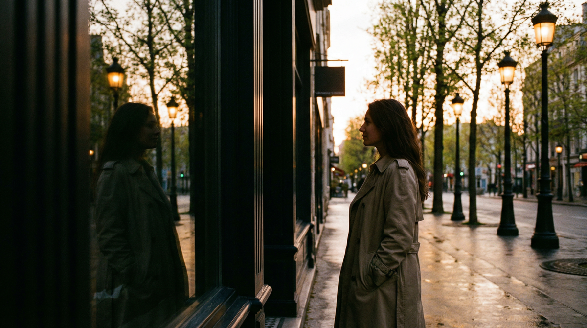 Я увидела себя в витрине обувного магазина – тёмное стекло, жёлтый свет изнутри, и женщина напротив. Плечи приподняты, сумка прижата к боку, и выражение такое, будто она ждёт, что сейчас кто-то толкнёт. Я не сразу поняла, что это я. А когда поняла – стало неловко, потому что так ходить по улице нельзя. Так стоят в очереди в поликлинику, когда из-за двери слышен крик. Или так стоят женщины, которые привыкли к тому, что мир в любой момент может ударить.