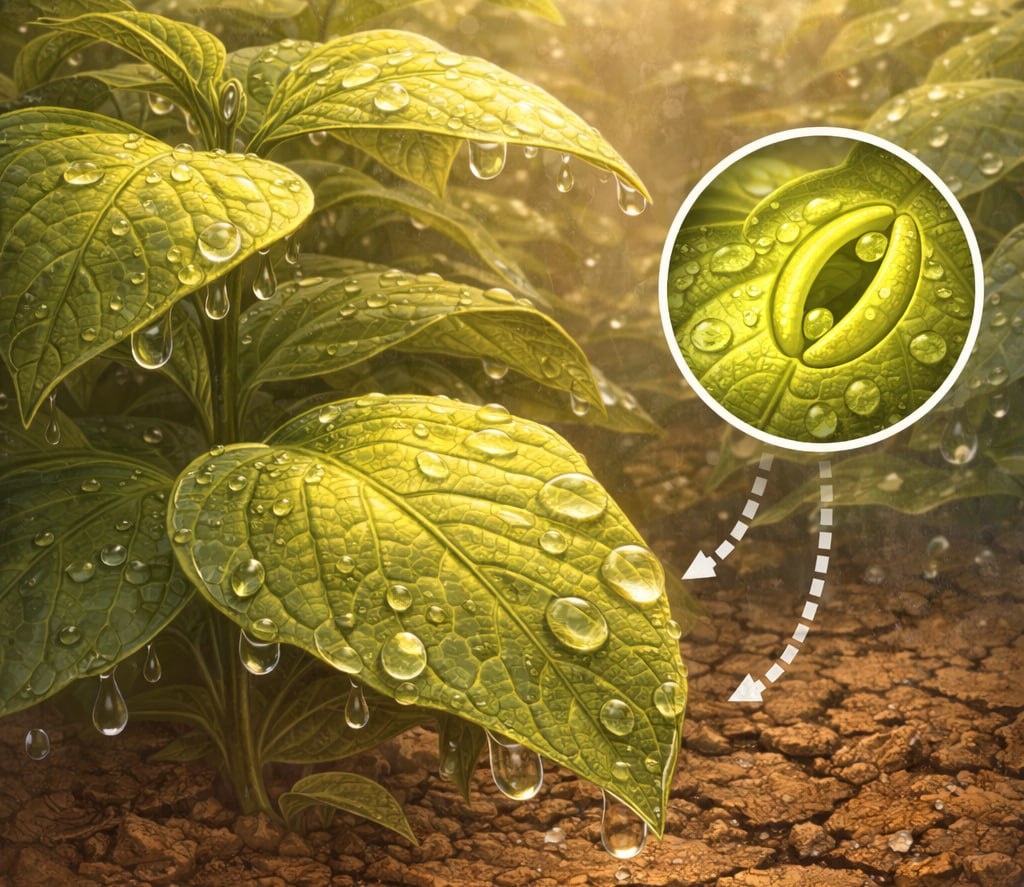 Ранним утром, когда на листьях появляется роса и влажность воздуха достигает максимальных значений, физиологическое состояние растений заметно отличается от дневного. Высокая влажность снижает риск избыточной транспирации, и устьица начинают открываться быстрее и активнее. В этот период усиливается газообмен между растением и атмосферой. Через открытые устьица активно поступает углекислый газ, необходимый для фотосинтеза, а клетки листа начинают интенсивнее включаться в процессы синтеза органического вещества. В результате именно в первые часы дня фотосинтетическая активность часто достигает одного из своих суточных максимумов. Такая физиологическая особенность имеет важное практическое значение. Когда устьица открыты и обмен веществ в листе наиболее интенсивен, растения лучше воспринимают внешние воздействия, включая внекорневые обработки. Поэтому многие агрономические технологии рекомендуют проводить листовые подкормки и обработки в ранние утренние часы. В это время физиологическа