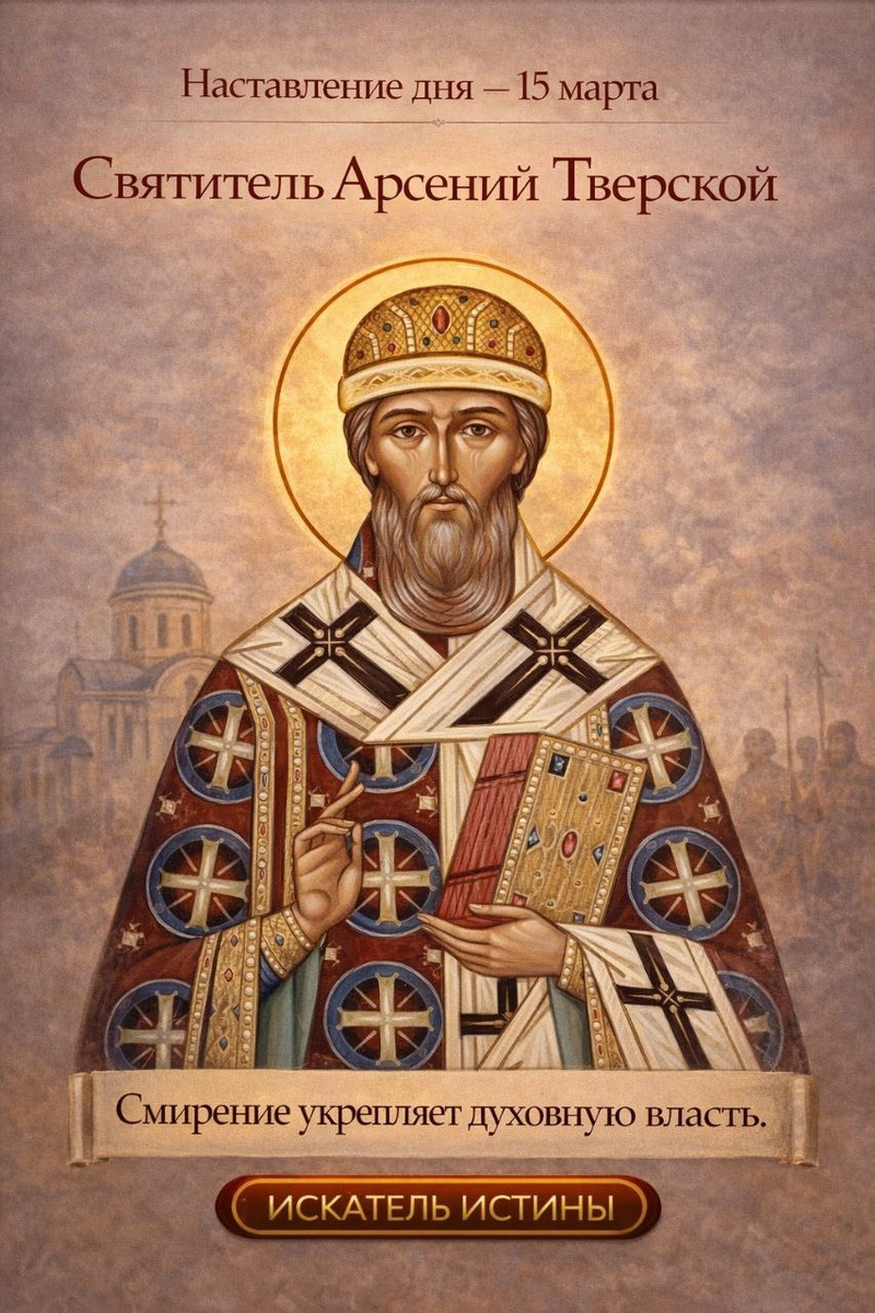 Святитель Арсений Тверской В этот день Церковь вспоминает святителя Арсения Тверского — архипастыря, который посвятил свою жизнь служению Богу, укреплению веры и духовному наставлению людей. Святитель Арсений был известен своей мудростью, кротостью и любовью к пастве. Он стремился не только управлять Церковью, но прежде всего помогать людям находить путь к Богу через покаяние, молитву и добрые дела. Его служение проходило в непростое время, когда требовалась твёрдость веры и духовная рассудительность. Святитель учил, что истинная сила пастыря заключается не во власти, а в смирении и заботе о людях. Он показывал пример жизни, в которой соединяются молитва, служение и ответственность за ближних. Именно такая жизнь рождает доверие и укрепляет Церковь. Память святителя Арсения напоминает нам: духовное руководство возможно только тогда, когда человек сам стремится жить по Евангелию.