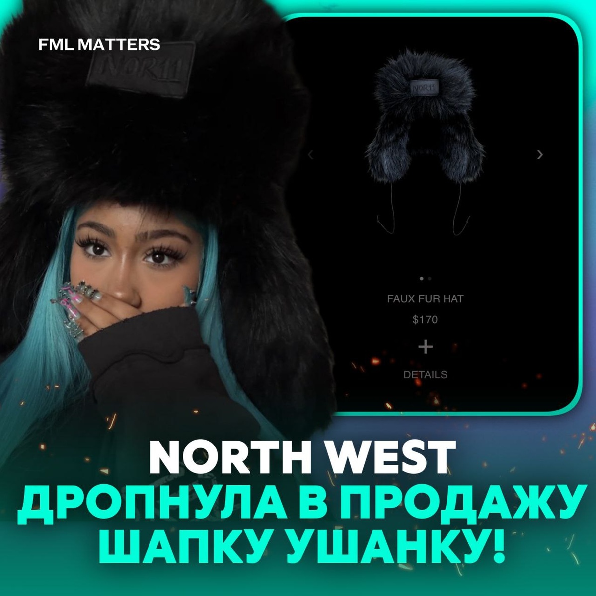 ! 12-летняя дочь Канье и Ким официально представила дебютный продукт своего бренда — меховую шапку-ушанку за $170 (около 13 600 рублей) Берём? ❤️🔥/👎 💀 FML MATTERS