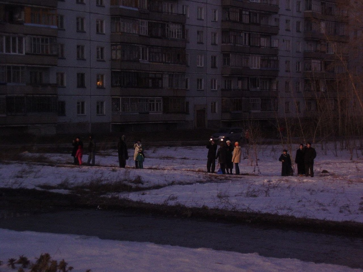 ПУБЛИКУЕТСЯ ВПЕРВЫЕ 29 марта 2006 года, жители Шлюза наблюдают полное солнечное затмение рядом с домом Русская, 25. P.S. Сосенок, растущих сейчас вдоль тротуара, ещё нет. Пройдёт несколько лет, и они будут посажены здесь Иваном Ивановичем Довганчуком (🙏🙏🙏). За фото Спасибо жителю Шлюза Анатолию!