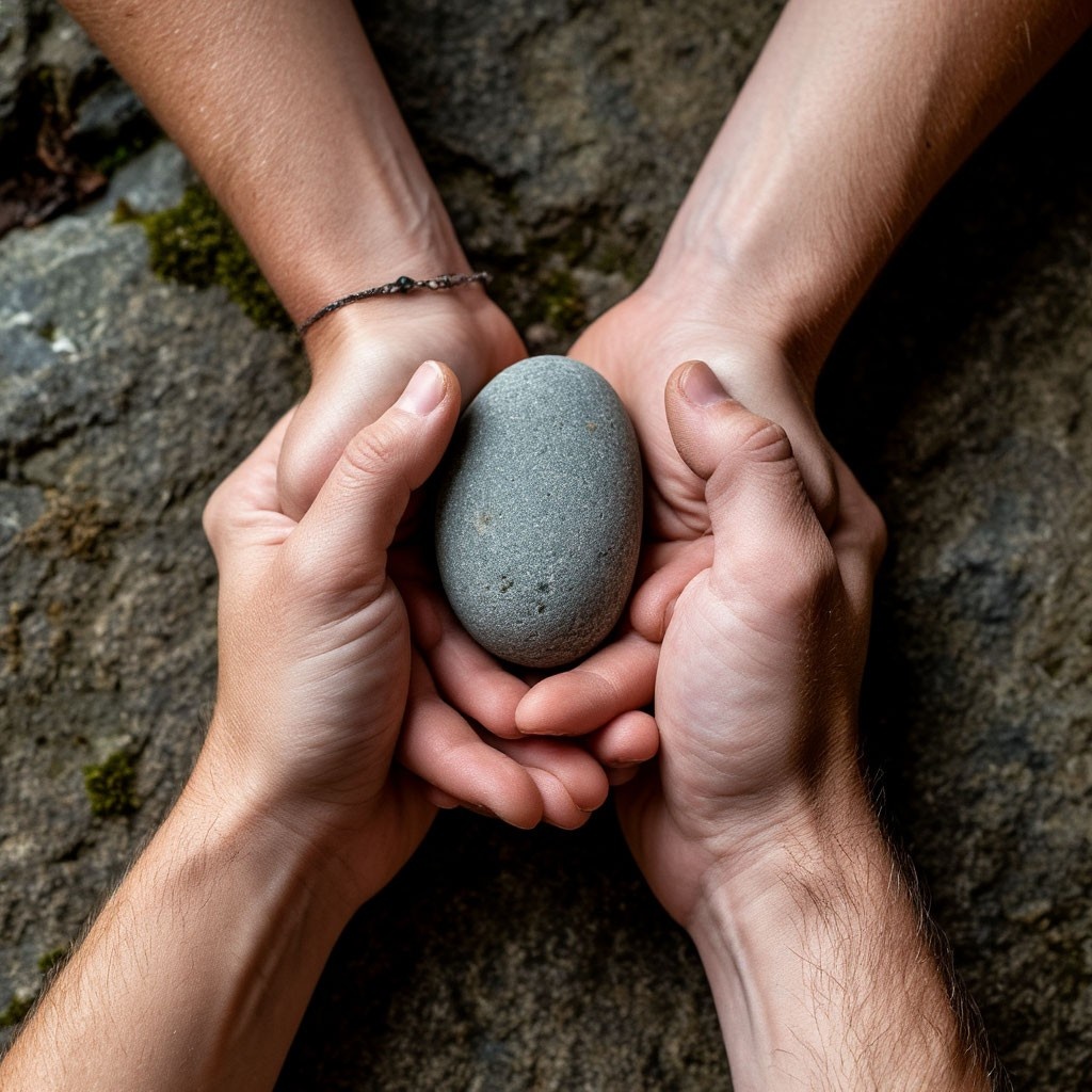 Там, где пространство между телами сужалось до нуля, в самом центре, покоился предмет. Не кинжал, не браслет. Камень. Обычный, на первый взгляд, речной голыш, но зажатый сразу в двух ладонях. Левая кисть женщины и правая кисть мужчины сомкнулись вокруг него пять тысячелетий назад и так и срослись с камнем, превратившись в окаменевший замок.