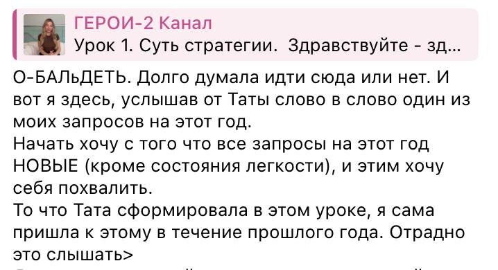 состояния и неожиданные открытия о себе: ✍️«В рамках программы Герои я устроила себе выходной! Пригласила в гости старую подругу, возобновила с ней отношения. Пошла в ночной клуб. Оделась так, как я хочу. Три поклонника за вечер. Я прям почувствовала как маска раздраженного бухгалтера осталась под дверьми клуба!» ✍️«Тата спасибо за мастер-класс! Захотелось наряжаться, общаться, жить!» ✍️«Для меня стало настоящим открытием насколько важно и ценно смотреть на запрос шире, глубже, глобальнее» И это лишь малая часть того, чем делятся участницы. Можно продолжать сидеть в своём уютном болотце… делая вид, что «всё нормально». А можно — однажды выйти из него.🤭 И вдруг обнаружить себя в клубе, в новой жизни и уже с первыми результатами. Присоединяйтесь 👉🏼ССЫЛКА 👉🏼ССЫЛКА 👉🏼ССЫЛКА
