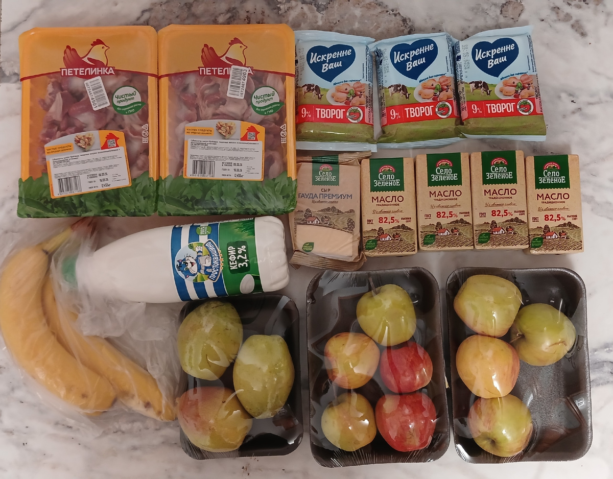 В марте мы питаемся на сумму 70% от прожиточного минимума на питание, Это 250 руб в день на человека, 7750 руб в месяц на одного и 15500 руб на двоих. Еще 171 руб - остаток денег с февраля. И на начало этой недели у меня было 10 986 руб на продукты. Я уже рассказывала, что Озон Фреш и мне, и мужу дал промокод на 30% скидки на 3 заказа. Т.е. всего 6 заказов мы можем сделать на таких условиях. 2 заказа я делала на прошлой неделе. 2 сделала на этой неделе, и еще 2 оставила на следующую. Кроме того, прислал промокоды Купер на одну доставку и скидку 700 руб от 1400 руб. У них конские цены на доставку (на самовывоз промокод не работает), но хоть что-то списали промокодом. У меня в морозилке уже почти пусто по мясу и рыбе, поэтому в заказах это и покупала в основном. заказ 1 яблоки 90 руб/кг, груши Форел 55 руб/0,5 кг (очень сочные, но почти не сладкие), бананы на 85 руб 4 шт кефир 33,6 руб , творог по 59 руб сливочное масло по 123 руб, сыр Гауда 130 руб куриные желудочки по 117 руб/уп Д