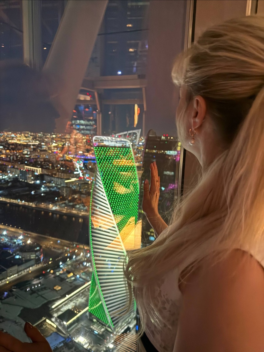 Потом под красивую музыку открыли огромное окно, чтобы гости могли посмотреть шикарный вид на ночную Москву, это было сюрпризом для нас 😍 (см.видео).