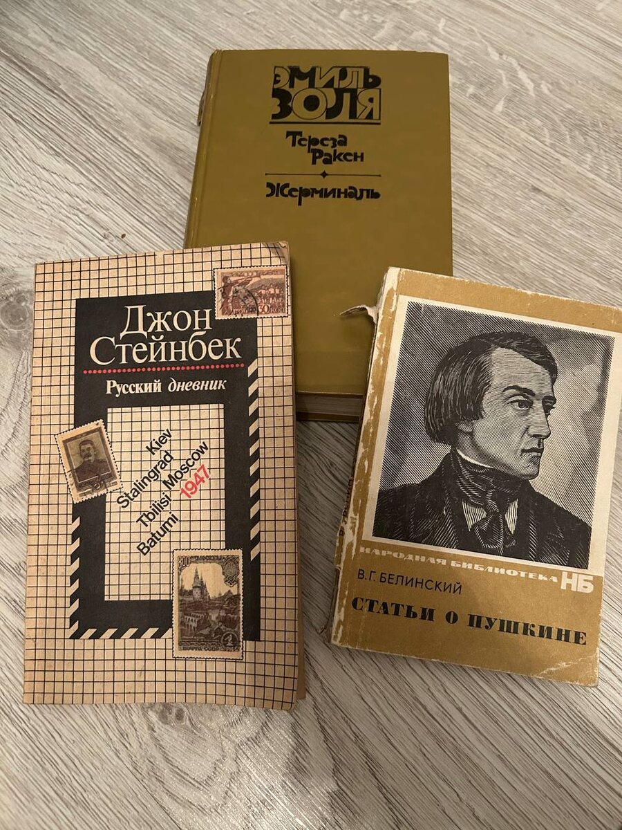 Кто не знает, с января я взяла аскезу на покупку новых книг. Теперь покупаю только кому-нибудь в подарок или детские. А сама раздобываю себе новые экземпляры в чате реюза и на полках буккроссинга. На этих выходных у меня в улове «Жерминаль» Золя, «Русский дневник» Стейнбека и сборник статей о Пушкине Белинского. «Русский дневник» схватила от жадности: помню, что читала, но не помнила, есть ли он у меня. Оказалось, что есть. Так что, если кому нужен, могу поделиться 😉
