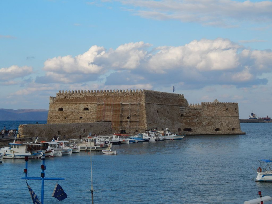 Гераклион, нынешняя столица острова, скучна и уныла. Запоминаются только лучший в мире музей минойской культуры (самая древняя европейская цивилизация! Фестский диск!) и симпатичный венецианский бастион при входе в гавань. От себя добавлю, что турки осаждали Ираклион 21 год, а осаждённым грекам и итальянцам помогала вся Европа. Ну всё как сейчас с евро.