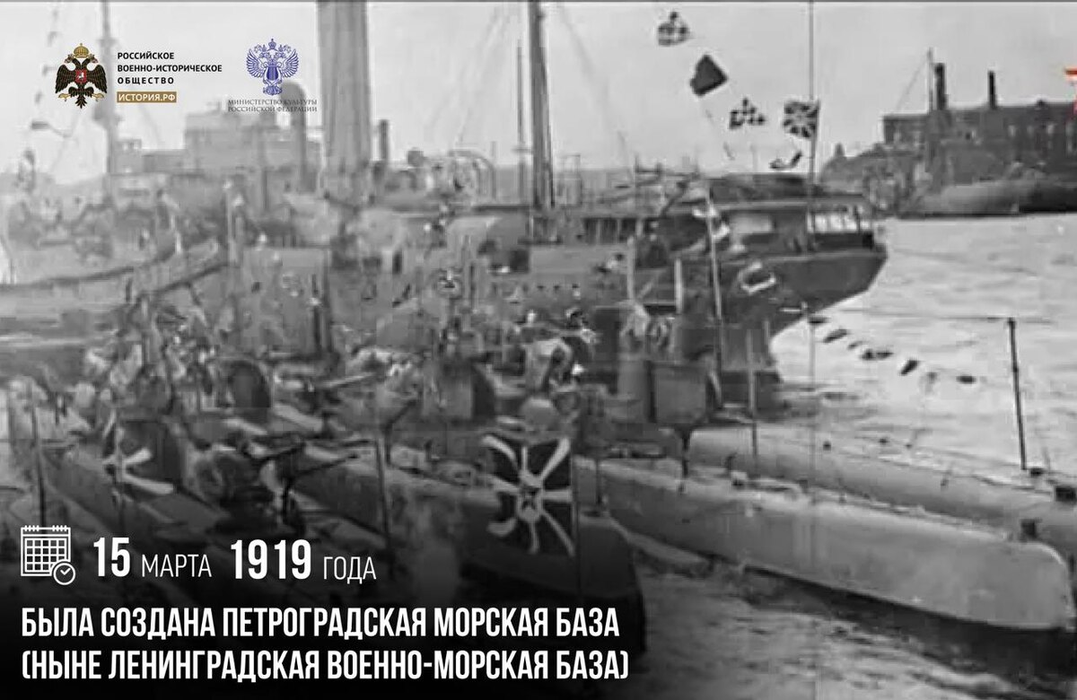 15 марта 1919 года была создана Петроградская морская база (ныне Ленинградская военно-морская база).