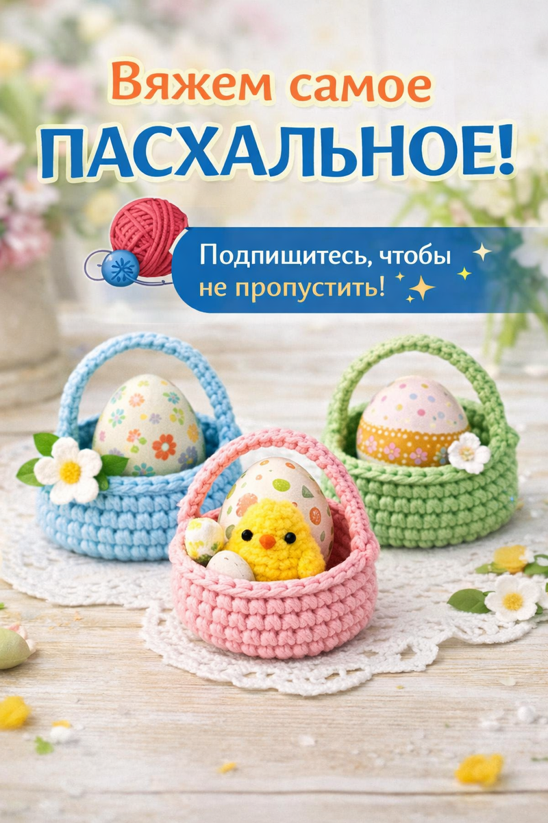 ✨ Мини-корзиночки для пасхальных яиц, связанные крючком.