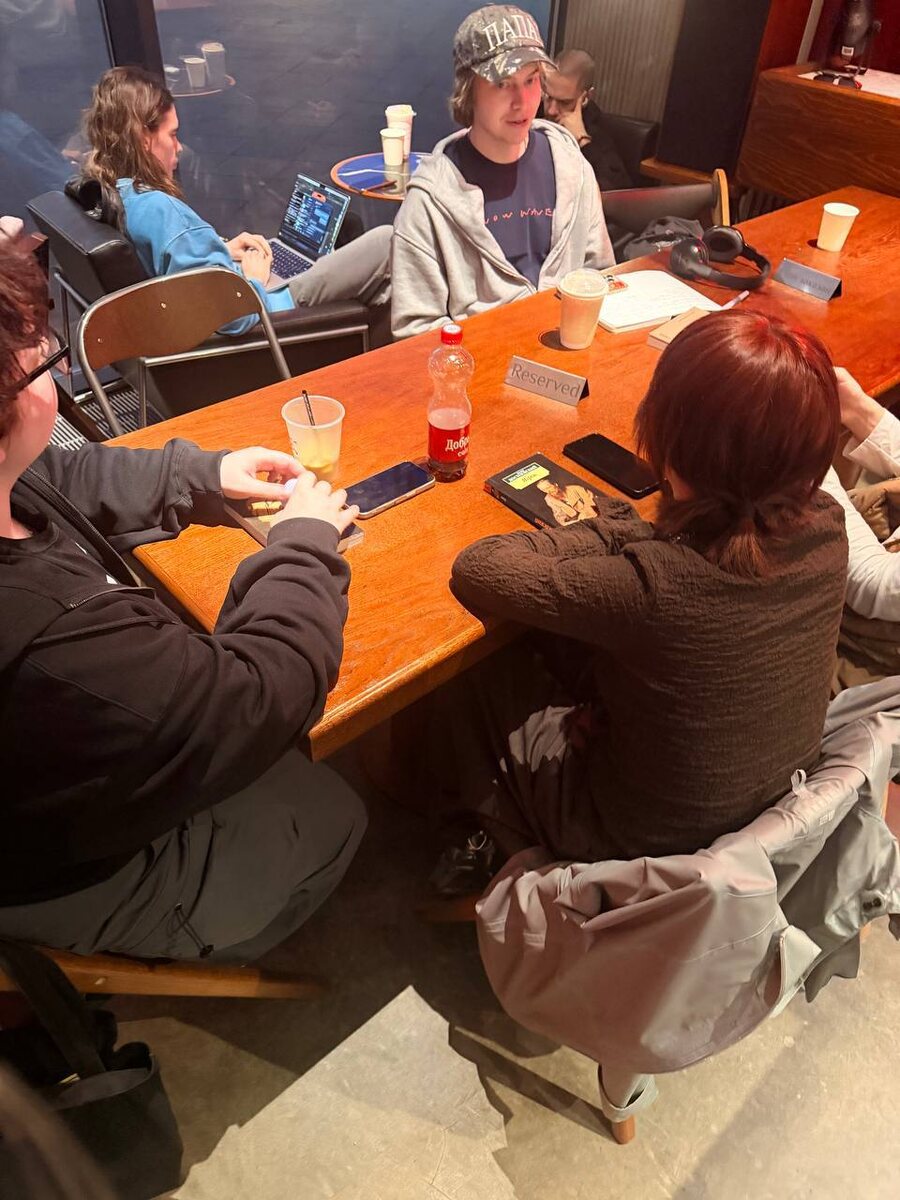 Не только у #культурнойСтоляр книжные клубы. Наткнулись в сетевой кофейне на зумеров, обсуждающих «Игрока» Достоевского.