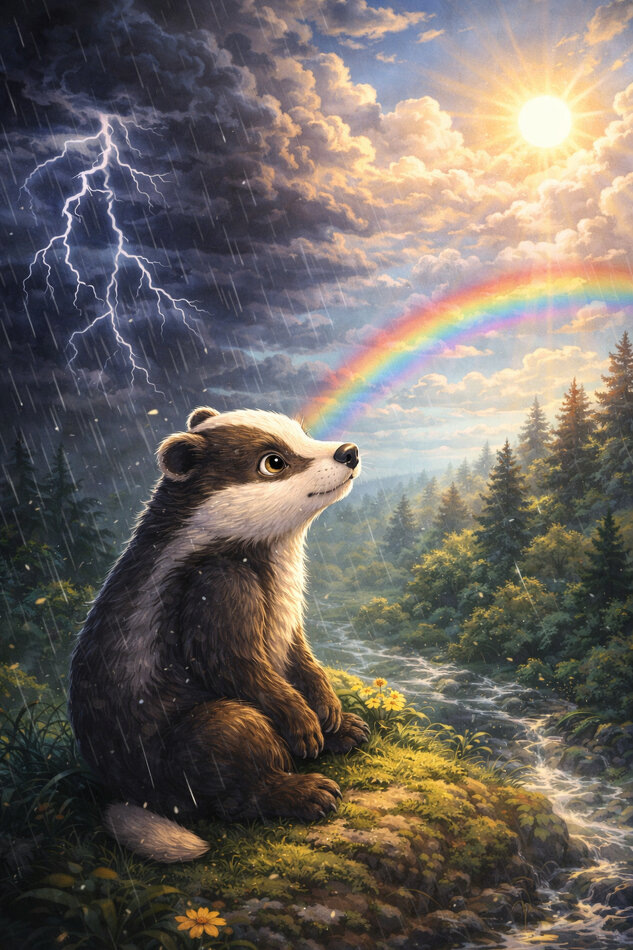 — А скажи мне, маленький барсук… когда в лесу идёт дождь, ты пытаешься остановить его?