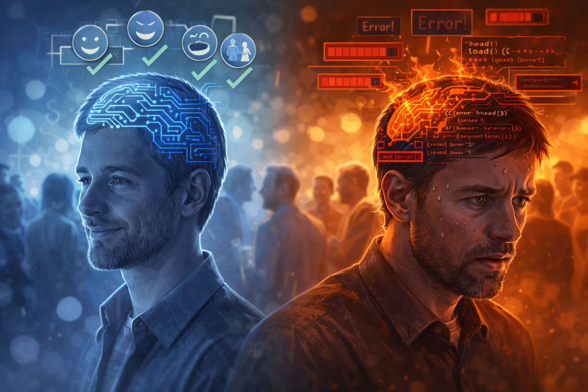 И дело не в равнодушии. Дело в другой архитектуре обработки информации. Человеку приходится не чувствовать, а вычислять. Смотреть на реакцию. Сравнивать с прошлым опытом. Запоминать реакции.