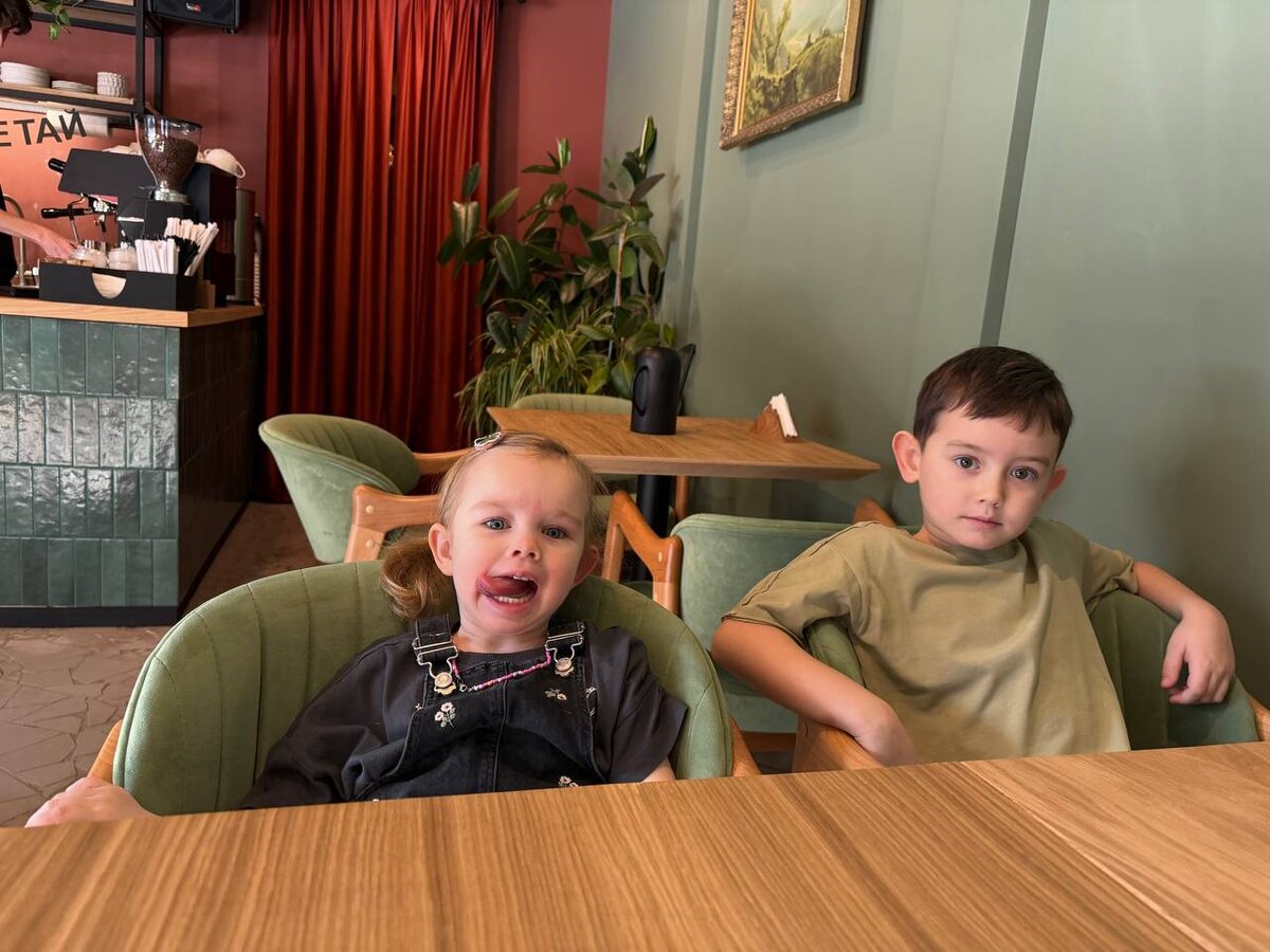 😭 Это мы утром ходили в новую кофейню на завтрак , в которой еще нет завтраков 😅 поели пирожные и сэндвичи 🙈 не хватает у нас на районе хорошего кафе, желательно детского