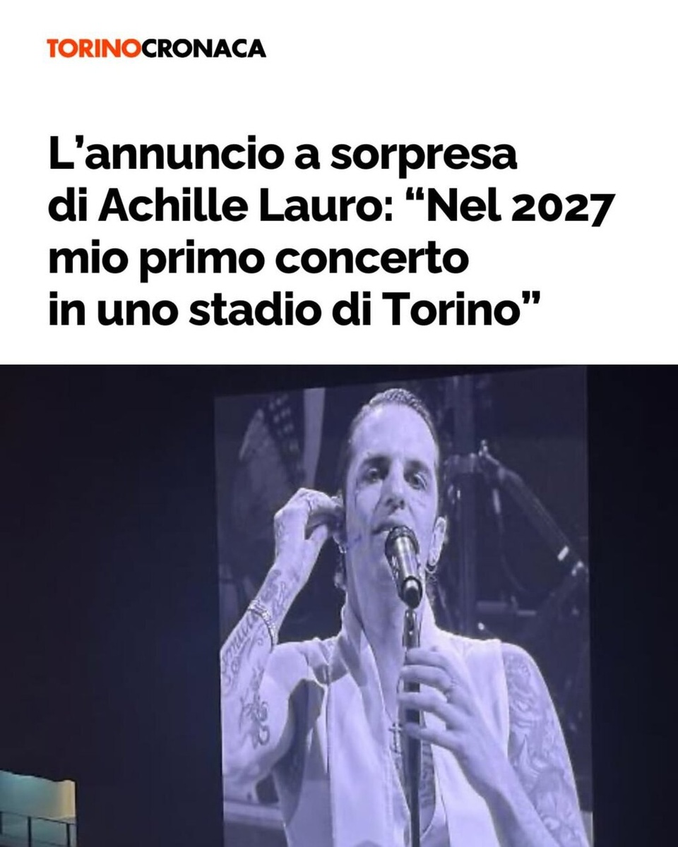 ✅ СПРАВКА: Эта новость переведена и размещена при помощи искусственного интеллекта Chat GPT без участия человека, в случае если вы заметили ошибку, или новость не соответствует реальному событию — сигнализируйте, исправим. 👉 Искренне Ваш Сержио Боттичелли: https://www.facebook.com/mercator.cz __________________ Какой сюрприз от Ахилла Лауро. В конце первого из двух концертов в Inapi Arena в Турине, вчера вечером, 14 марта (второй состоится 24 числа), он объявил, что его первый концерт на стадионах пройдет именно в Турине, на стадионе Allianz 22 июня 2027 года. Официальные продажи билетов начнутся 16 марта. 👉 Новости Европы: https://it.euro24.news/novosti/category/evropa #новости_турина #деловая_европа #новости_италии