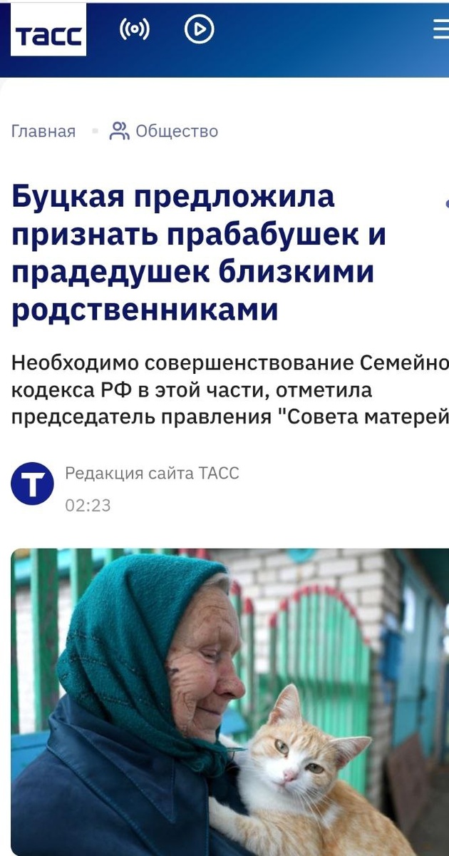 задает правильный вопрос - как такое может быть?? Ответ на этот вопрос уже дал Президент, он сказал, что будущее России - это многодетная и МНОГОПОКОЛЕННАЯ семья. Посмотрим, что Совету Матерей ответит Минюст. https://tass.ru/obschestvo/26757565