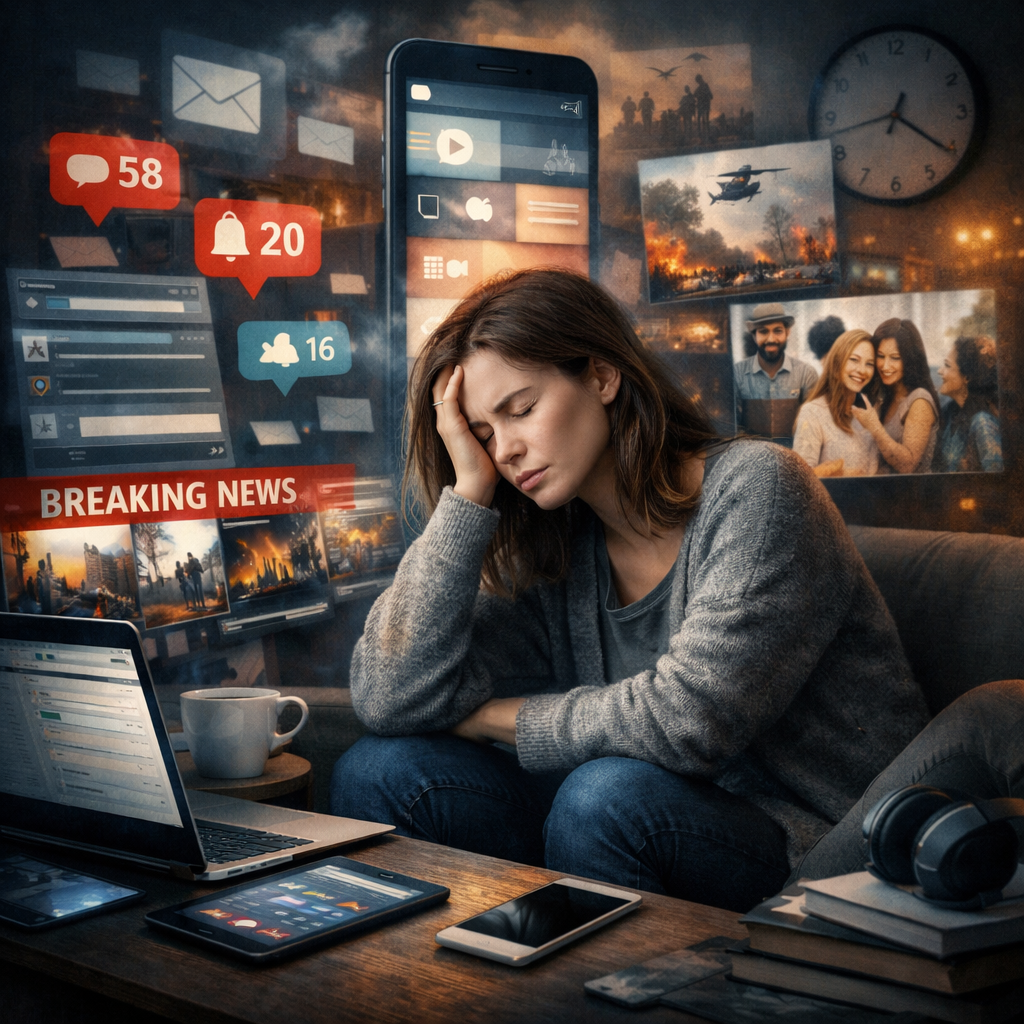 Даже если эти события напрямую нас не касаются, мозг воспринимает их как угрозу. Постоянное чтение новостей может поддерживать хронический уровень стресса.