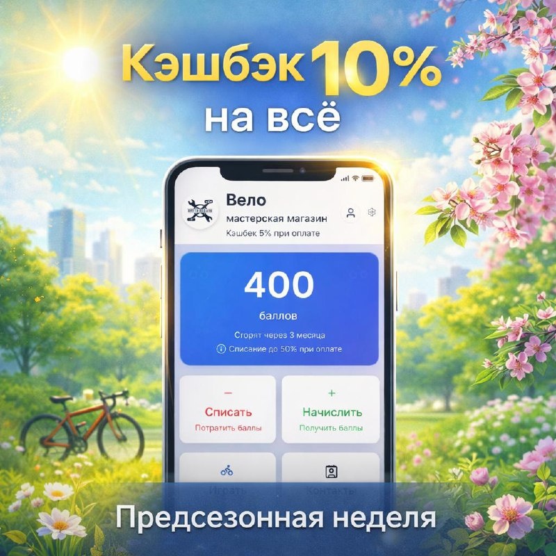 Всю следующую неделю в нашей системе лояльности действует повышенный кэшбэк 10% на всё — на работы, запчасти и аксессуары. Самое время обслужить велосипед спокойно, без очередей, и встретить сезон уже на полностью готовом байке. 🔥 Акция действует только до 22 марта по промокоду: СЕЗОН Также в системе лояльности вас ждут +300 приветственных баллов за регистрацию. Подключиться можно здесь: https://t.me/Krutikz_bot 📍 Адрес: Университетская 34 📞 Телефон: 89172254879 💬 Telegram: @krutipedals