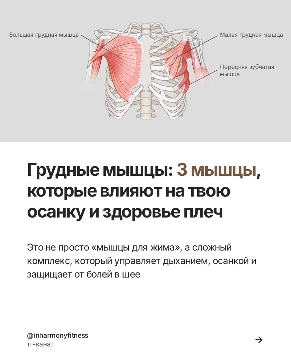 Грудные мышцы — это не только про эстетику, а про здоровье опорно-двигательного аппарата в целом. 🦴