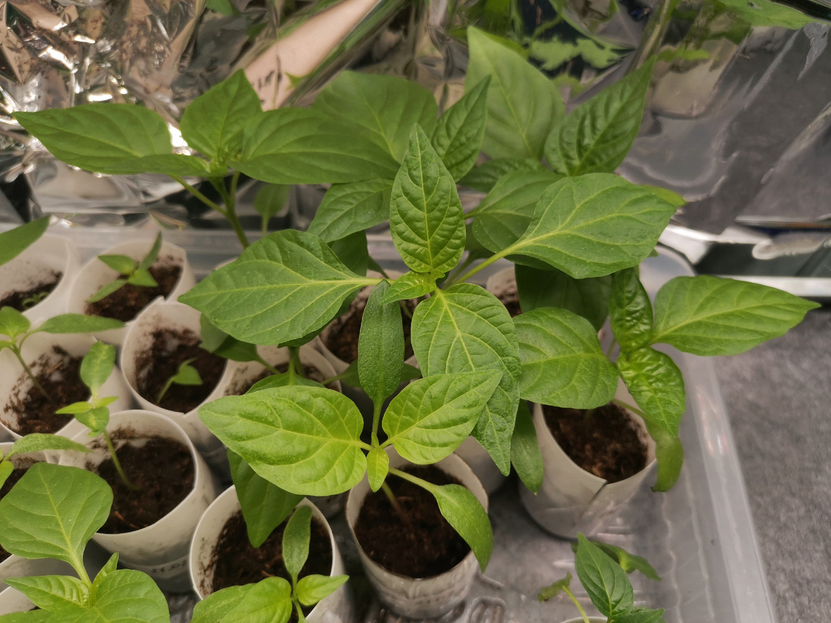 Томаты растут хорошо, там особенно нет вопросов, по ним сделаю отдельный отчёт, когда у всех появятся настоящие листья. Есть те, что не взошли полностью, есть те, что успели удивить.