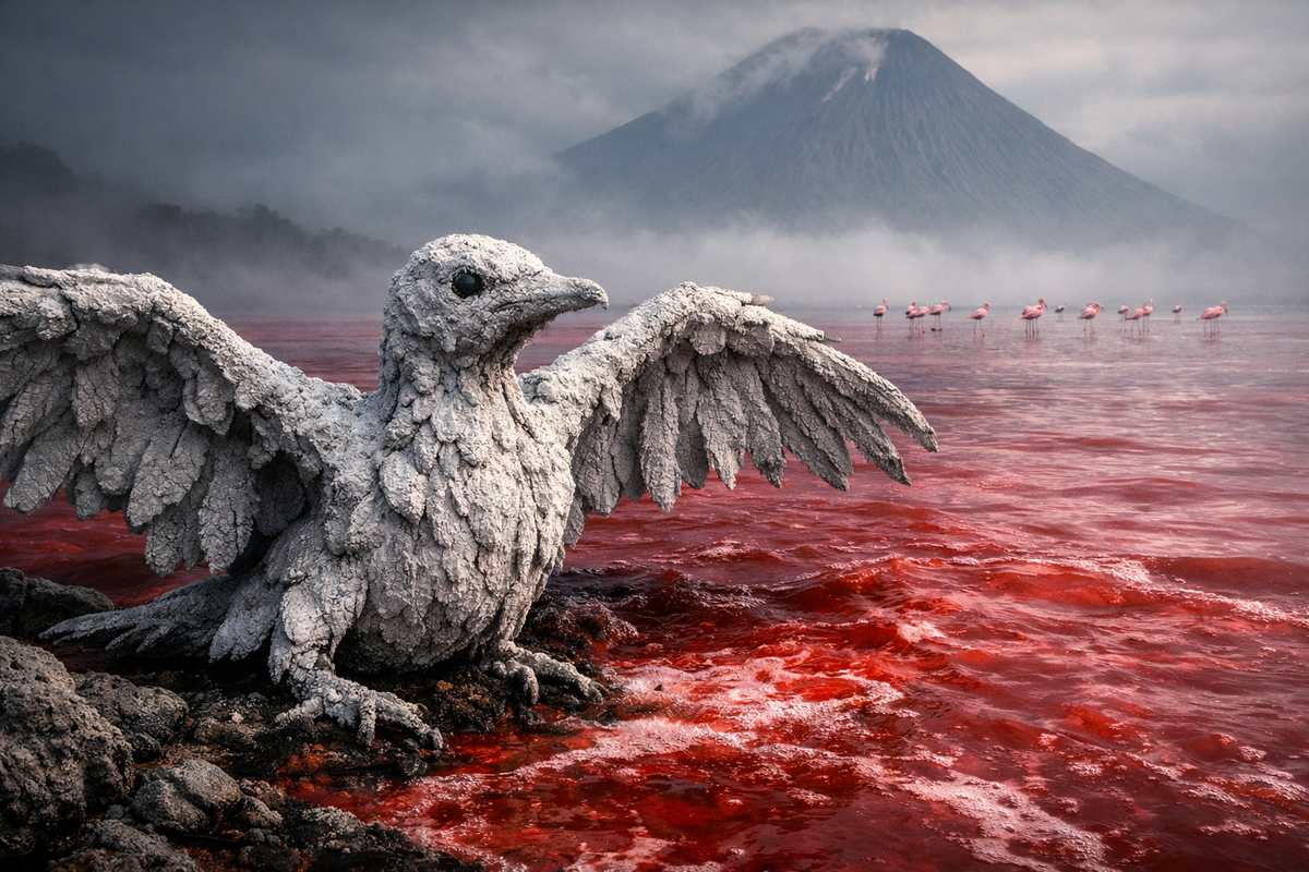 И оно действительно превращает живых существ в камень. Озеро Натрон в Танзании выглядит как инопланетный пейзаж.
