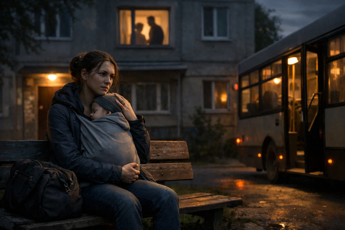 Автобус ехал в темноту, а я смотрела на свое отражение в стекле — женщина с ребенком, без дома, без денег, без будущего. Но с одним важным знанием: я жива. Я здесь. Я держу своего сына.