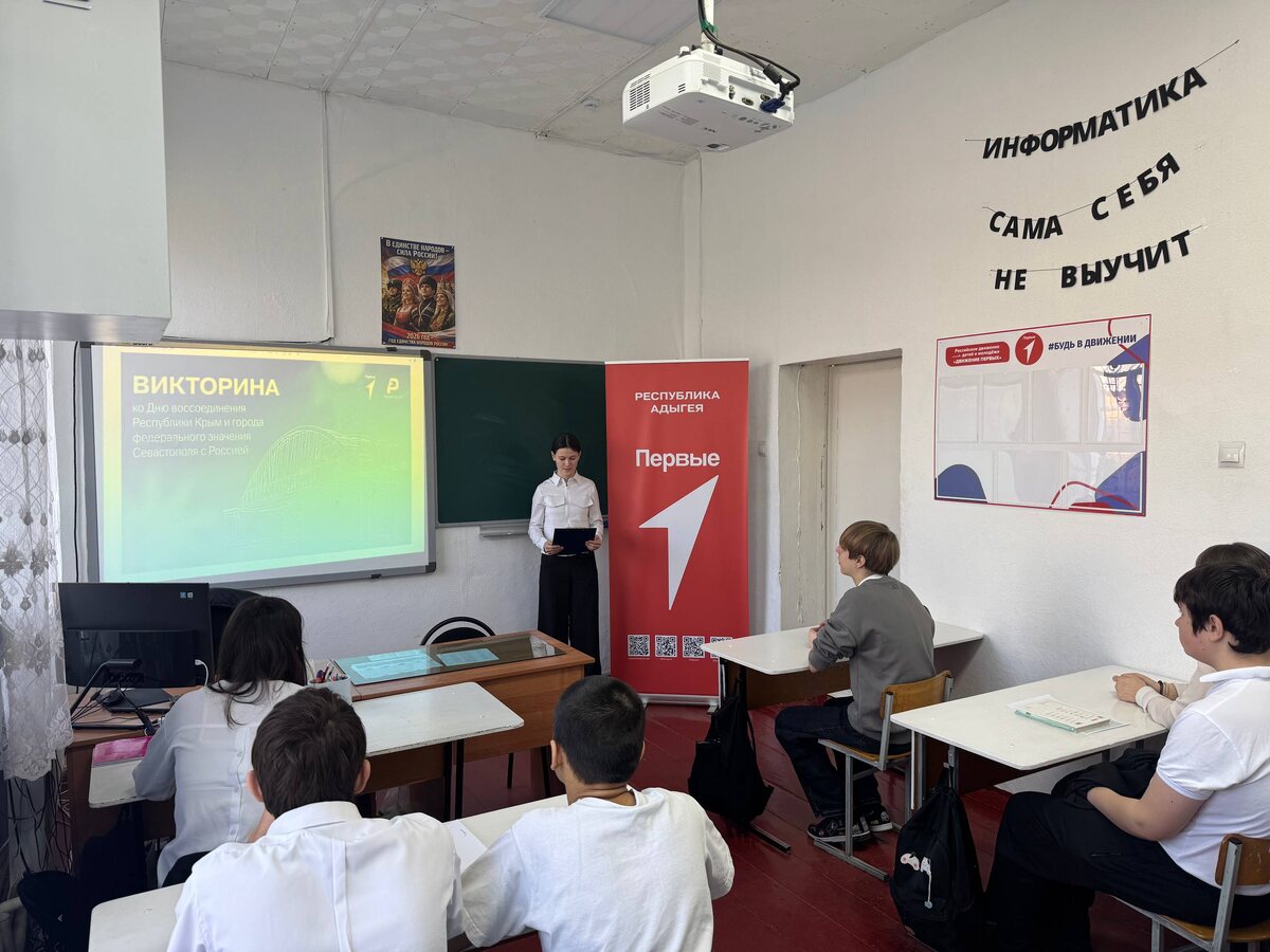 ! 🇷🇺✨ В первичном отделении Движения Первых прошла Всероссийская акция «Одна страна — одна история», посвященная знаковому событию — Дню воссоединения Крыма с Россией! 🌊 Ребята погрузились в атмосферу «Крымской весны» и проверили свои знания в увлекательной викторине. Участники отвечали на вопросы об истории полуострова, его уникальной природе и легендарных личностях, которые прославили этот край. #ДвижениеПервых #ДвижениеПервых01 #ОднаИстория #НавигаторыДетства #Росдетцентр