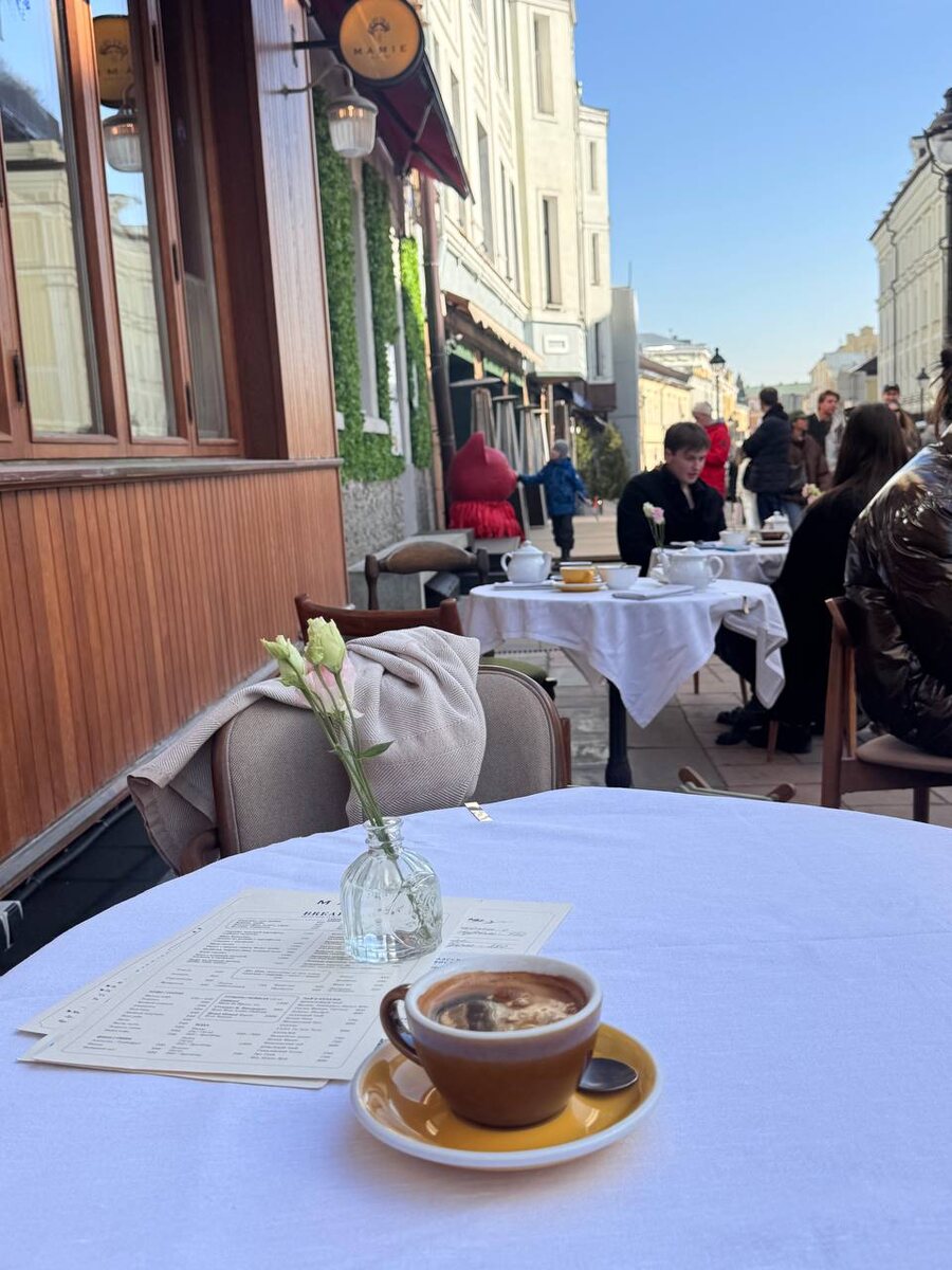 ☕️ Всю зиму ждала когда вот так сяду на Никитской с чашечкой кофе и пусть вся работа подождет. Официально в 2026 году открыла сезон завтраков на веранде с подругами ✌🏽 15.03.26