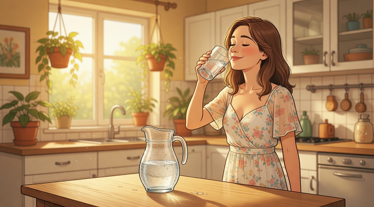 Мы уже много чего сделали за эти дни. Наладили сон (помните про мелатонин и темноту?). Разобрались с кожей и SPF (зимний крем убрали, защиту достали). Попробовали двигаться без насилия над собой. И даже провели эко-ревизию бытовой химии. Но есть одна база — фундамент, на котором стоит всё остальное, и который мы чаще всего игнорируем: вода.