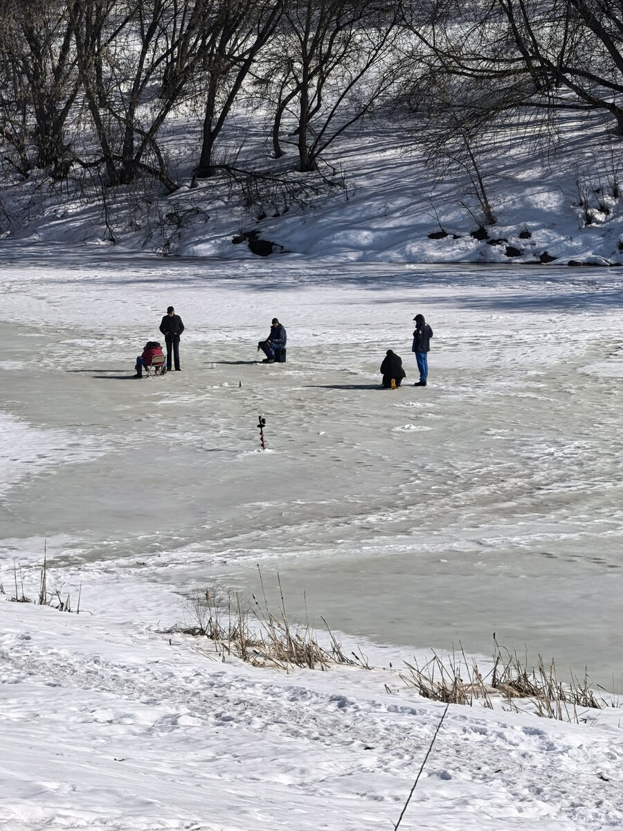 ✨ Наши рыбаки ничего не бояться ⚡ Рыбакам весна нипочём, лед уже не такой прочный, а вот если провалятся... 🙈 📸Фото сделано на реке Теребенка 👉 Прислать новость 💥 Проект "Чехов Детям"