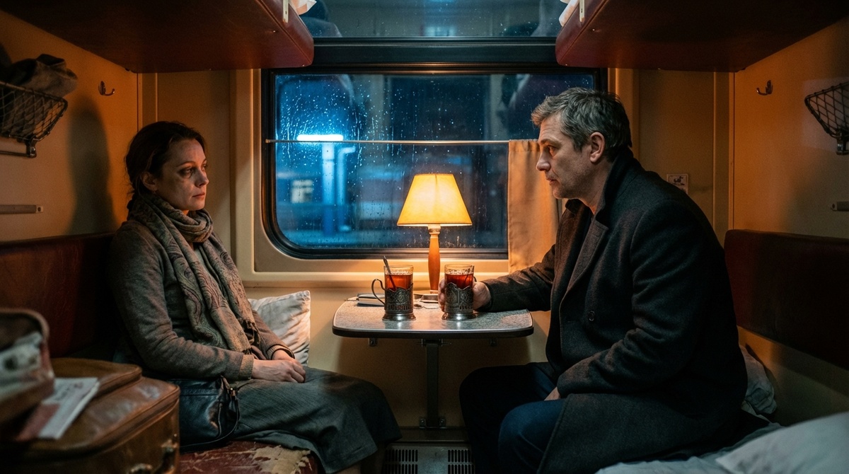 Ирина забросила тяжелую сумку наверх, тяжело выдохнула и присела на краешек нижней полки. За пыльным двойным стеклом медленно плыл перрон. Тележки с багажом. Какая-то суетливая женщина с помятым букетом хризантем. Мужчина в строгом сером пальто, идущий вдоль состава... он вглядывался в номера вагонов, хмурясь от мелкого дождя.