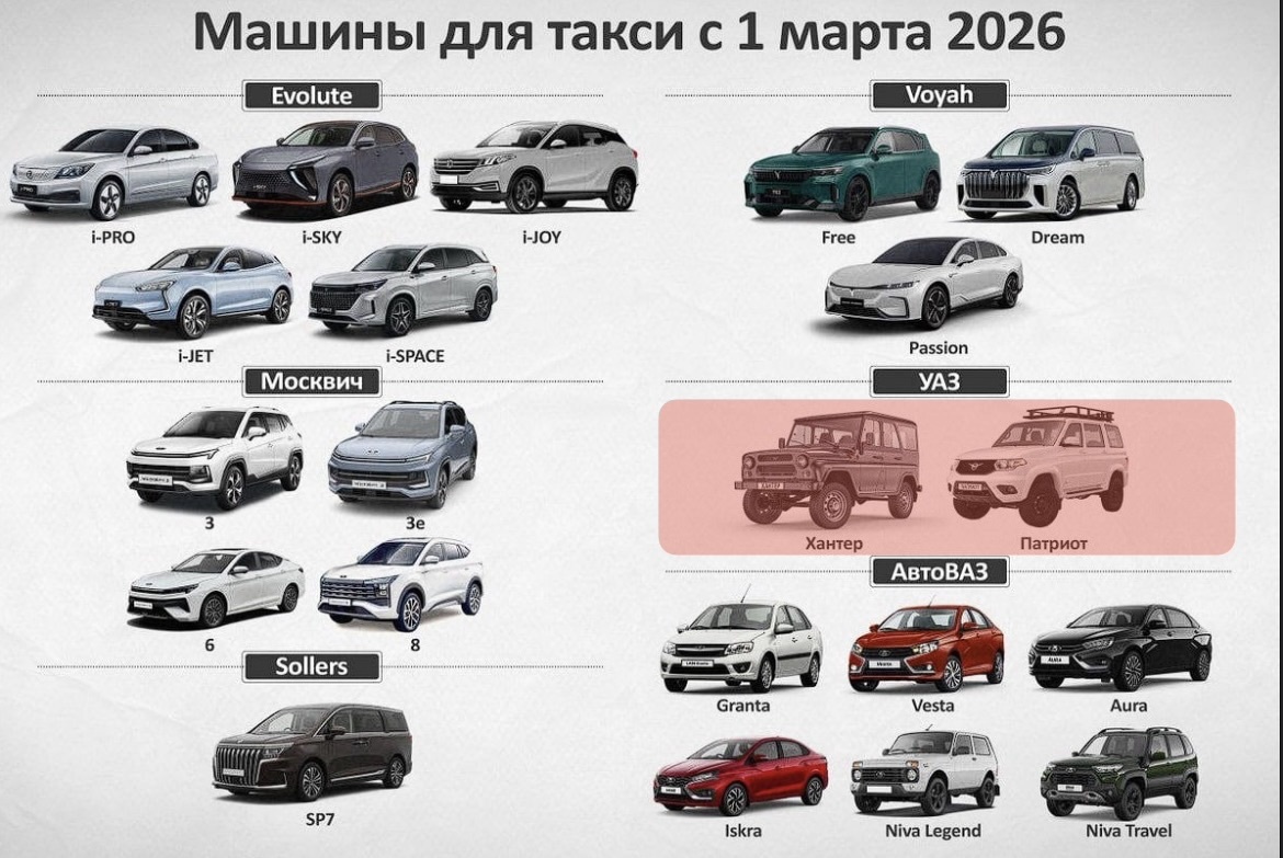 УАЗы относятся к классу повышенной проходимости, а для такси такие машины не подходят. Странно? Да. Особенно для регионов с плохими дорогами, где внедорожники часто выручали таксистов. Но закон есть закон — УАЗам места в списке нет.