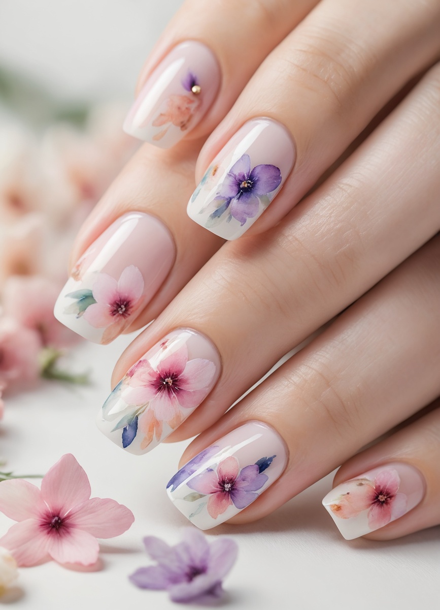 Пошаговая инструкция: как создать акварельные цветы на ногтях