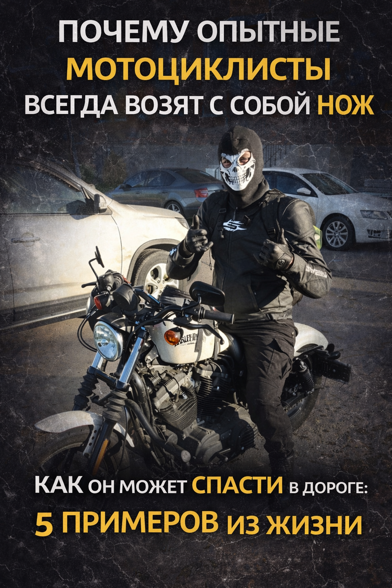 Мотоциклисты знают: на трассе может случиться всё что угодно. И иногда простой нож оказывается тем инструментом, который реально выручает.