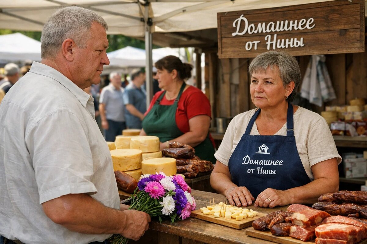 На ней был новый фартук с вышитым логотипом, от коптильни тянуло дымком, а очередь растянулась вдоль ряда. Женщины спрашивали рецепты, записывали телефон, просили привезти что-то к праздникам. Рядом командовала Тамара, нарезала кусочки на пробу и торговалась с оптовиком, который хотел брать их сыр в магазин.