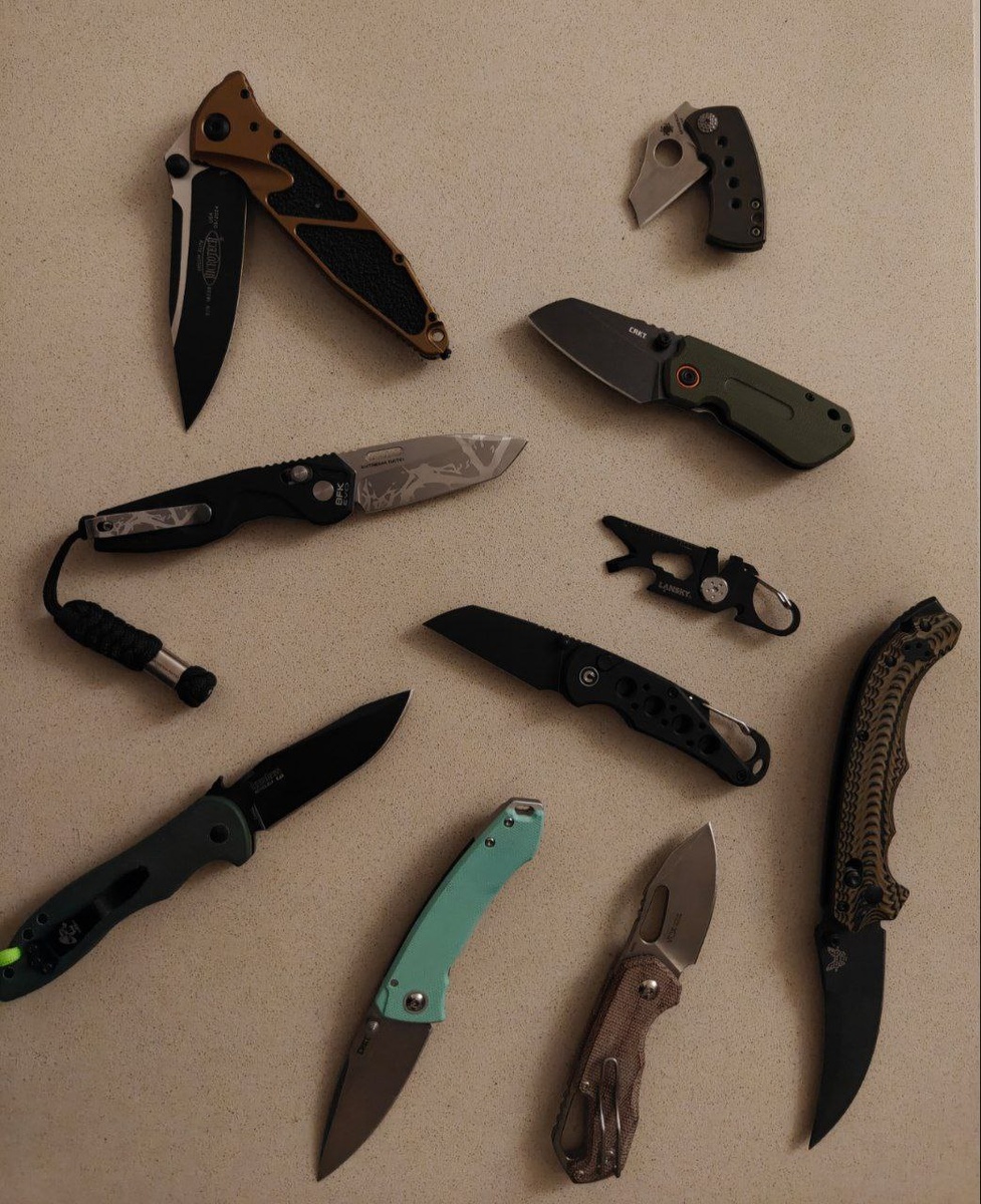 Так как за прошедшие выходные выбирался только в магазин, остро страдаю от нехватки красивых видов. Зато заметил, что на рабоче-обеденном столе за неделю скопилась вот такая композиция. Ножевая неделька: каждый нож побывал на кармане ровно один день. Иногда даже парами, но в разных карманах. Решил поделиться. Да и ножевого контента давно не было. Вдруг кто скучал. (Если жена читает этот пост, то это все старые экземпляры. На новые денег не тратил)