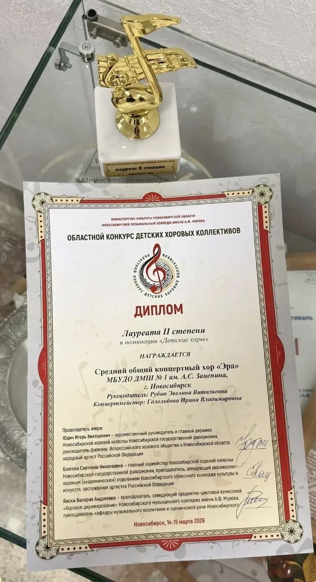 С. Зацепина, под руководством Рубин Эвелины Витальевны и концертмейстера Ирины Владимировны с победой! 🥈🎶 Сегодня мы стали Лауреатами II степени в номинации "Детские хоры" на Областном конкурсе в Новосибирском музыкальном колледже им. А.Ф. Мурова. Ура! 🎉✨ Пусть это достижение станет лишь началом новых побед и наших ярких выступлений! 🌟👏 В этом посте есть большое видео, которое не загрузилось в Дзен. Откройте оригинал поста в телеграме, чтобы его посмотреть