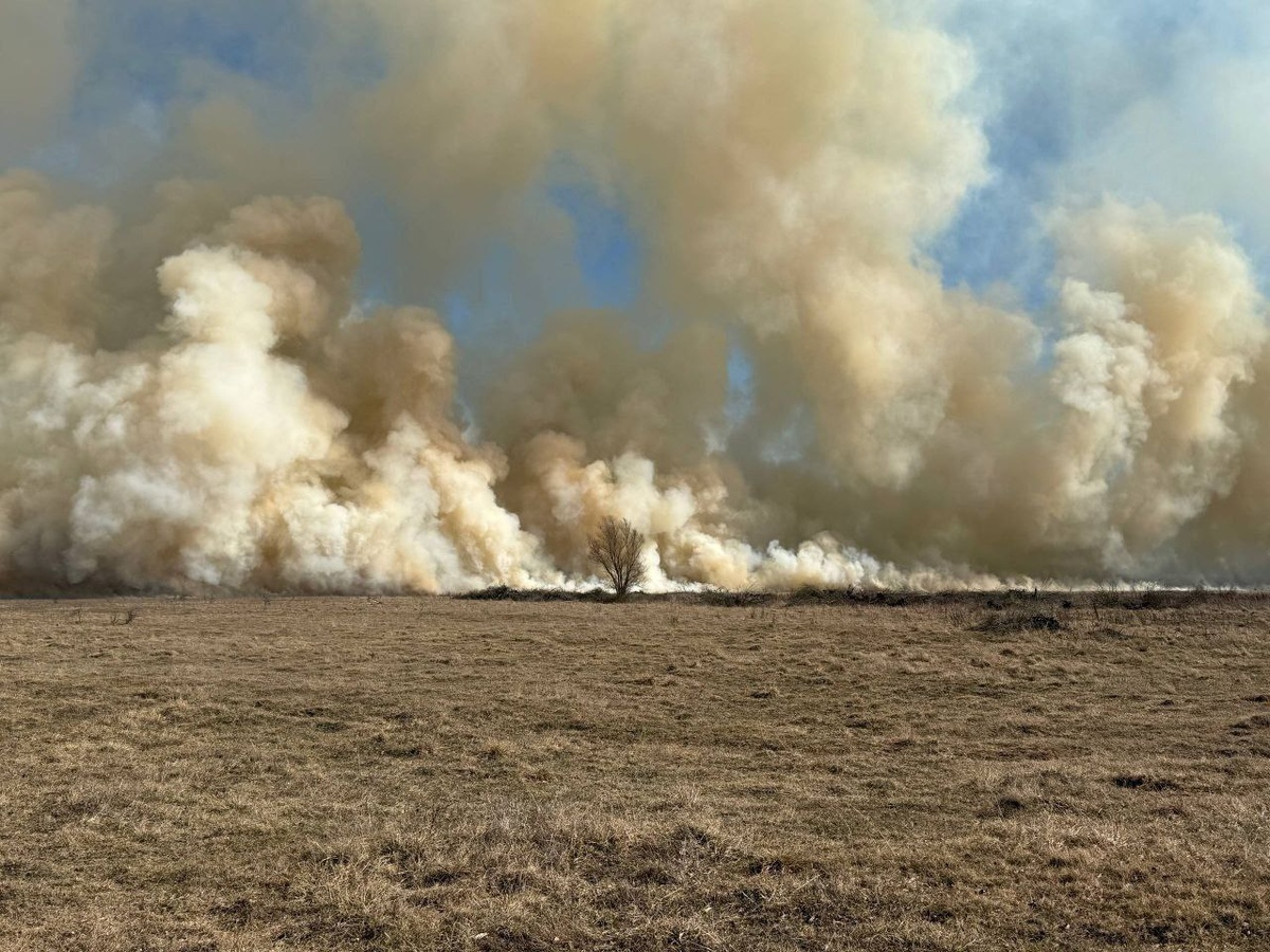 Из-за сильного ветра огонь в Пинском районе продолжает распространяться и приближается к Стытычево.