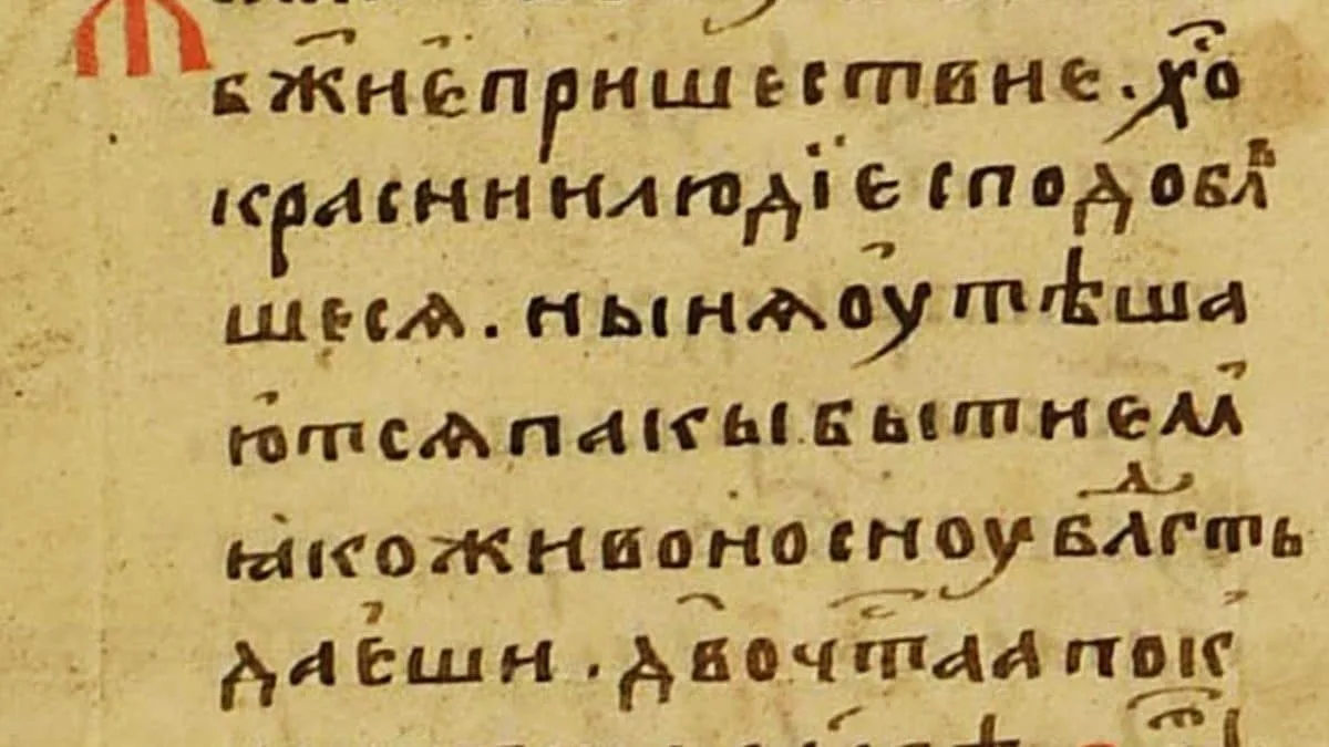 Кириллица стала основой для современного русского алфавита и использовалась для записи старославянских и древнерусских текстов, например, в Остромировом Евангелии (XI век).