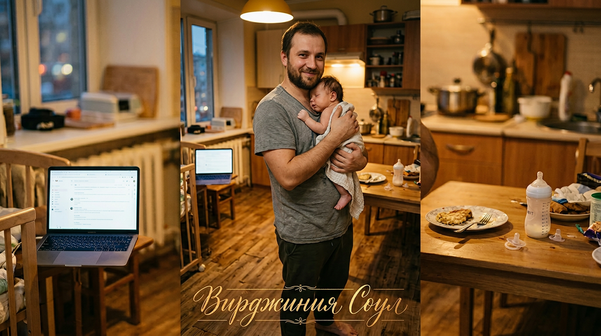 Я села на кухне с остывшим чаем и слушала тишину. Три месяца: крик, белый шум из колонки, мой голос, охрипший от колыбельных. А тут: холодильник гудит, Богдан ходит босиком по ламинату, за стеной тихо сопит Макар. Оказалось, ему нужен был не мой голос. Ему нужна была грудная клетка отца, широкая, тёплая, с сердцем, которое бьёт медленно и ровно.