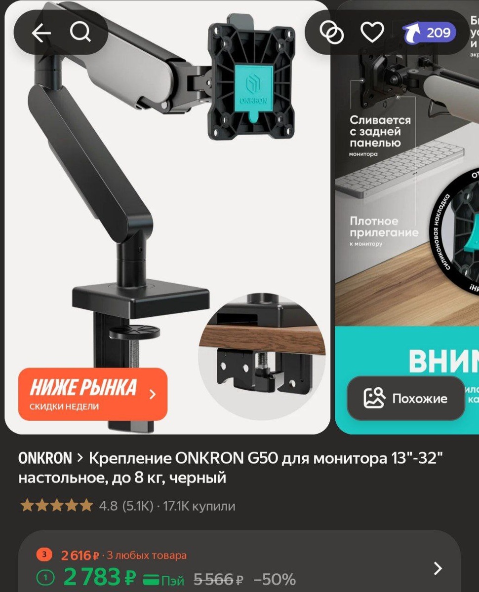 Крепление ONKRON G50 для монитора 13"-32" настольное, до 8 кг, черный