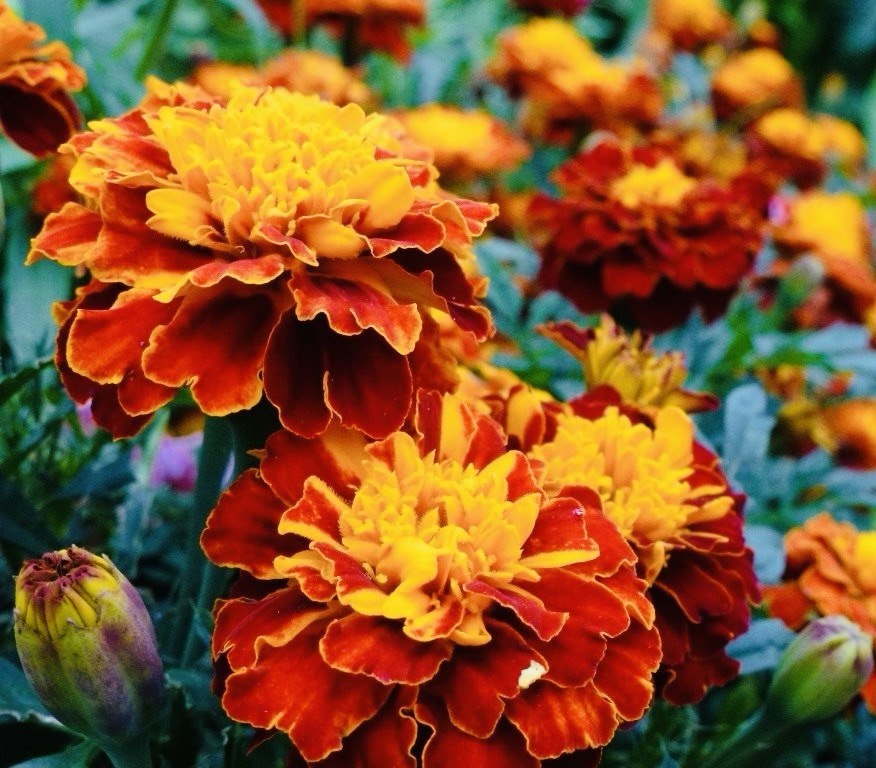 Междурядья. Бархатцы высаживают между картофелем, капустой, клубникой и томатами.