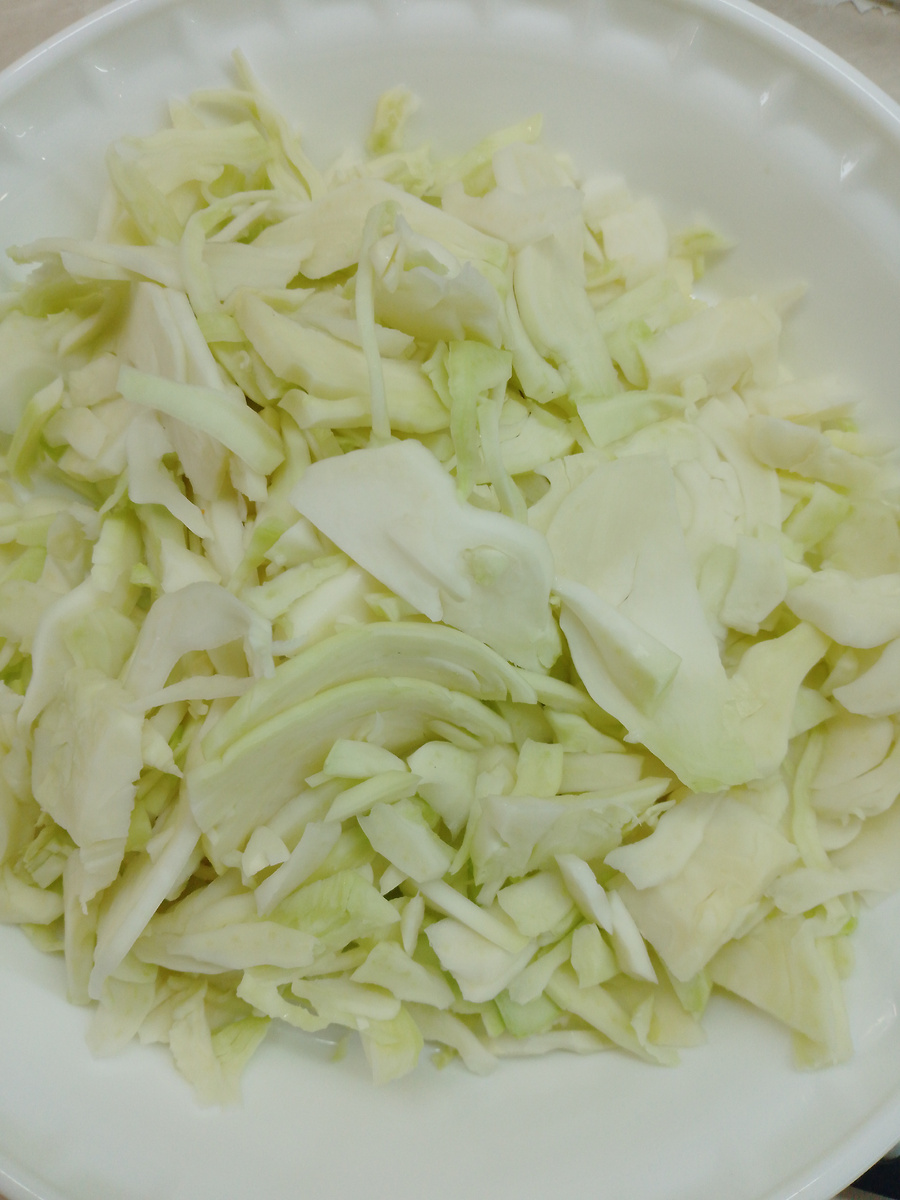 Морковь трём на крупной терке. Добавляем к капусте. Перемешиваем.