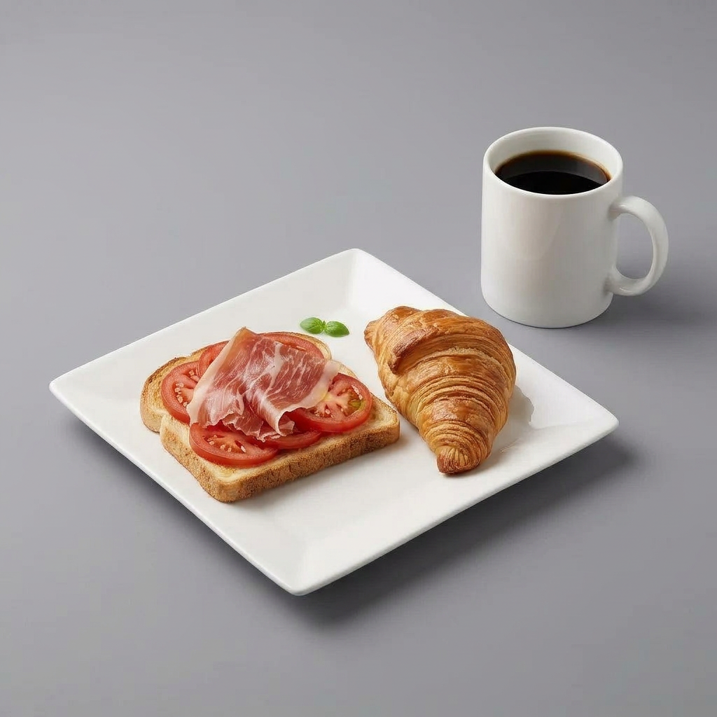 Калории: ~260–300 ккал (на основе классического pan con tomate ~230 ккал + хамон)