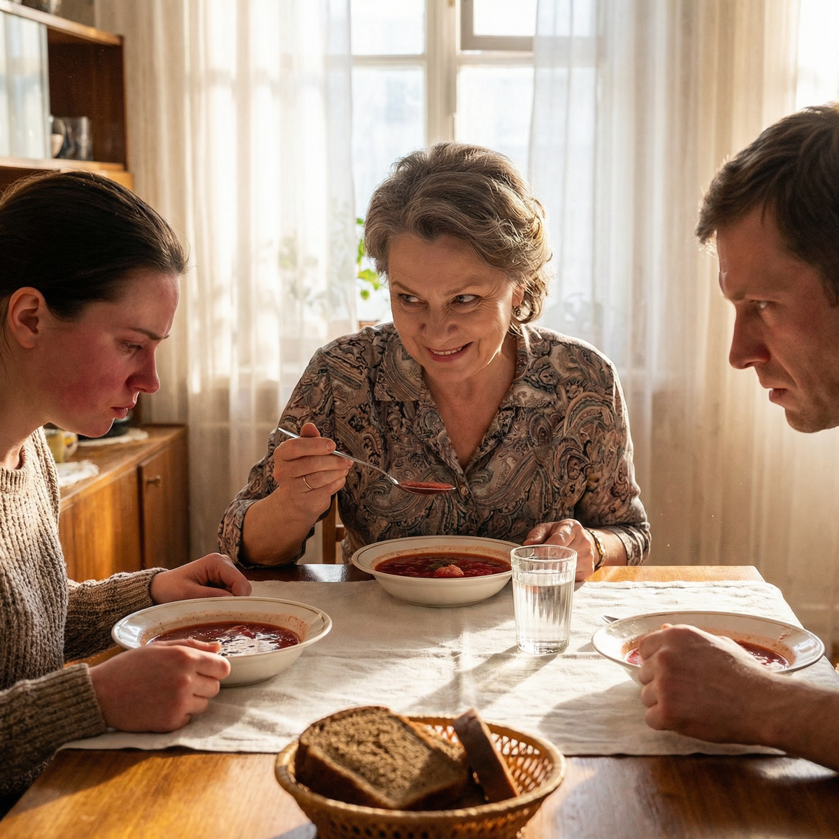 Валентина Семёновна осталась одна за столом с остывшим борщом и странным, неудобным чувством победы.