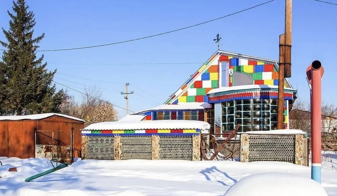 Вы знали, что в Уфе есть дом из кинескопов и бутылок? Вы знали, что в Уфе есть дом из кинескопов и бутылок? На улице Деревенская переправа, 4а местный житель превратил отходы в арт‑объект. Веранду сложил из 36 кинескопов, а забор — из тысяч стеклянных бутылок. А украсил всё огромным якорем и корягами. Идея пришла ему ещё в юности, когда первый кинескоп вставили в баню вместо окна. Свет пропускает, а что внутри — не видно. Позже так же оформили целый дом. В необычных интерьерах уже снимали клипы и устраивали фотосессии.