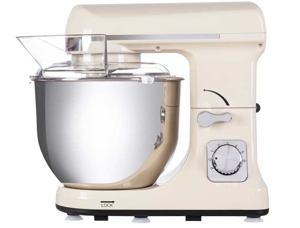 Миксер имеет двигатель мощностью 1000 Вт, большую чашу из нержавеющей стали на 5 литров и несколько насадок для разных задач. Благодаря планетарному вращению, насадки обрабатывают всю массу в чаше, так что тесто, крем и другие густые смеси перемешиваются равномерно, без комков.