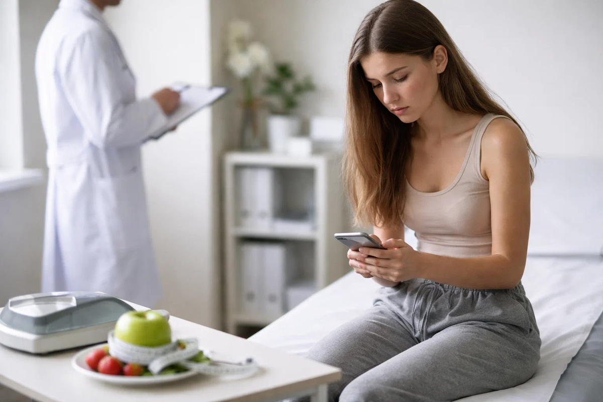И вот тут возникает ещё один слой проблемы — образ тела. Смартфон постоянно подбрасывает подростку картинки, по которым он почти автоматически начинает измерять себя. Даже если человек вроде бы не ищет контент о похудении, он всё равно живёт в среде, где тело превращено в витрину. Фотографии, фильтры, удачные ракурсы, советы по питанию, ролики про «идеальную форму», шутки про внешность, комментарии сверстников — всё это создаёт фон, на котором собственное тело легко начинает казаться недостаточно хорошим. А дальше запускается очень неприятный маятник. Подросток чувствует недовольство собой, пытается себя ограничивать, устаёт от внутреннего давления, срывается на переедание, потом испытывает вину и снова ищет успокоение в телефоне. Получается замкнутый круг, в котором и экран, и еда используются как попытка справиться с тяжёлыми чувствами.