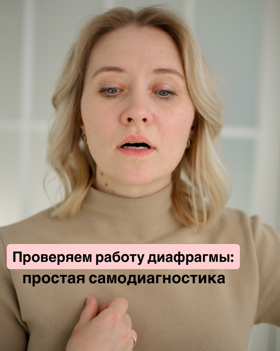 Сегодня разберём, как понять, работает ли твоя диафрагма так, как нужно. Это важно: от её слаженной работы зависит и дыхание, и поддержка тазового дна, и общее ощущение баланса в теле. Делать проверку лучше в спокойной обстановке, когда ты никуда не торопишься. Что понадобится: 🔸твоя рука; 🔸возможно, зеркало (чтобы видеть движение живота); 🔸спокойное дыхание и внимание к ощущениям. Шаг 1. Положение Ляг на спину, колени согнуты, стопы на полу. Обе ладони положи на нижний край ребер. Расслабь плечи и шею. Шаг 2. Наблюдаем за дыханием Закрой глаза и понаблюдай несколько циклов своего дыхания: вдох и выдох.⠀Не пытайся «дышать правильно» — просто наблюдай за нижним краем рёбер, потому что к нему крепится грудобрюшная диафрагма, и именно эта область и должна двигаться. Шаг 3. Добавь «вкусняшку». Представь и почувствуй, что у тебя во рту что-то очень вкусное и приятное, наблюдай за движением рёбер под ладонями. Шаг 4. Проверка в вертикальном положении Встань или сядь прямо, спина ровная,